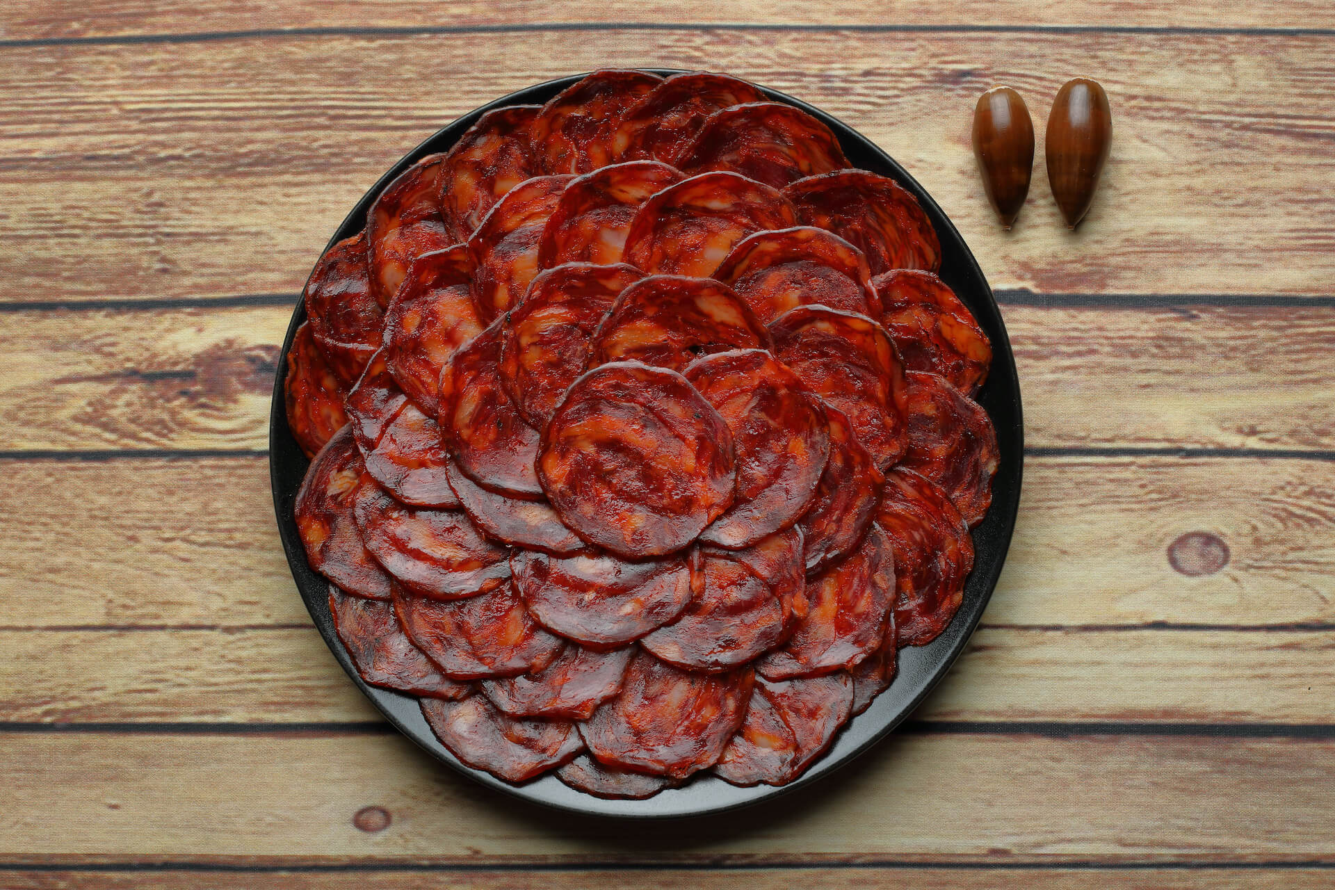Chorizo Ibérico de Bellota is een gerijpte Spaanse worst gemaakt